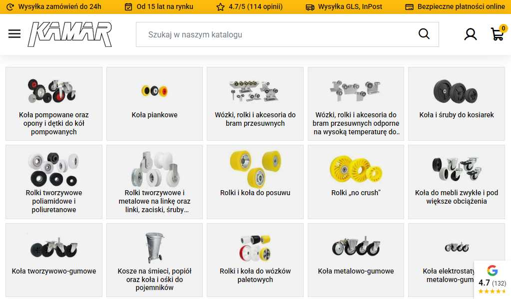 Kamar - Koła i Rolki przemysłowe - W sklepie internetowym Kamar-Kola.pl czekają na Ciebie koła i rolki o różnych zastosowaniach – od lekkich kół meblowych po wytrzymałe modele przemysłowe. Produkty wykonane s...